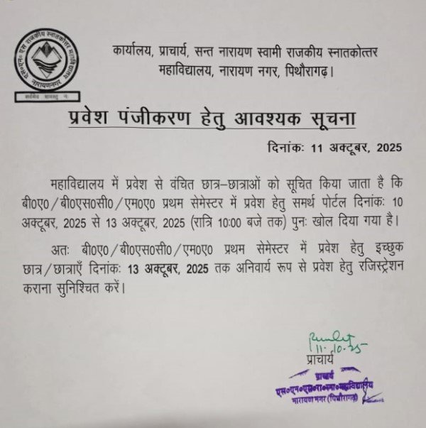 प्रिय छात्र, आपको सूचित किया जाता है कि उत्तराखण्ड राज्य संयुक्त बी.एड. प्रवेश परीक्षा 2025–27 (नोडल विश्वविद्यालय: कुमाऊँ विश्वविद्यालय, नैनीताल) की काउंसलिंग हेतु आवेदन की अंतिम तिथि विस्तारित करते हुए […]